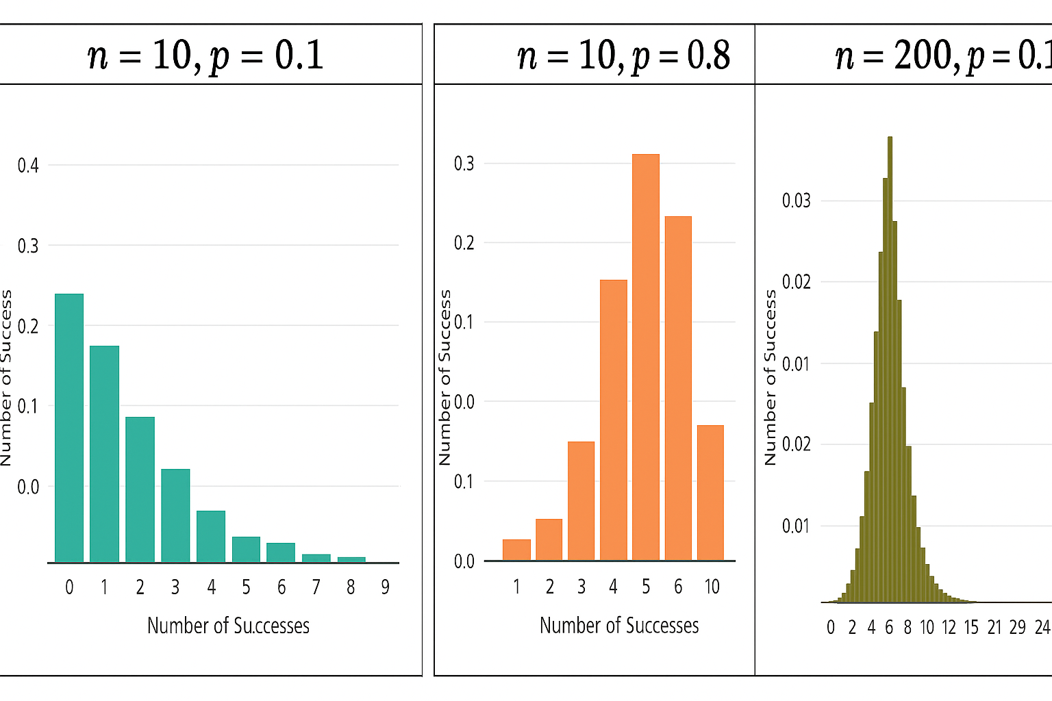 - For large \(n\), if \(np \geq 10\) and \(n(1-p) \geq 10\), the graph is approximately bell-shaped.